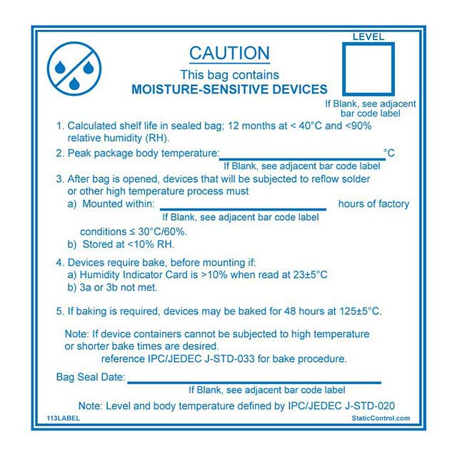 | 説明 | LABEL MOISTURE WARN 4"X4" 100PC | フリーステータス/ RoHS状態 | 該当なし/該当なし |